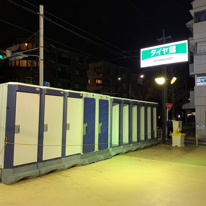 PIT前スペースを仮設トイレ設置場所に