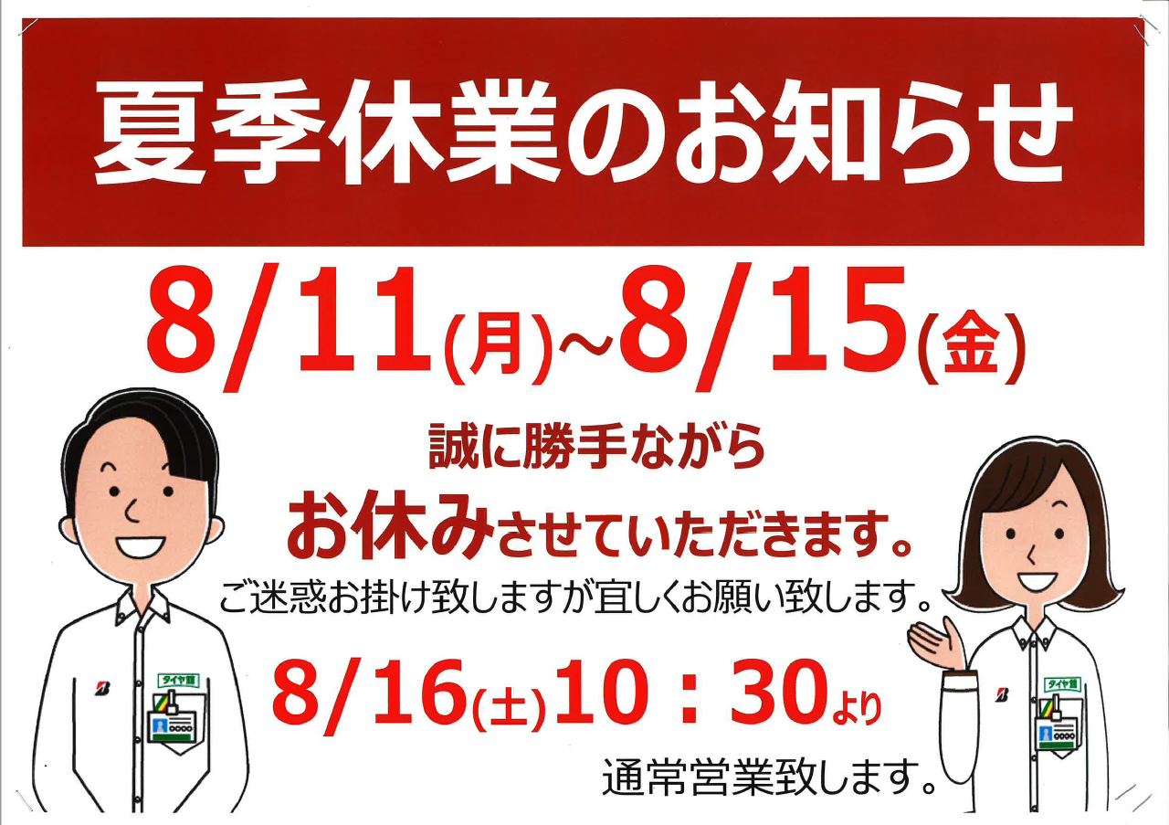 誠に勝手ながら8月11日~8月15日は お休みさせていただきます。 ご迷惑をおかけ致しますがよろしくお願い致します。 8月16日からは通常営業になります。