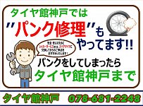 急なパンクの時もタイヤ館神戸にどうぞ!!