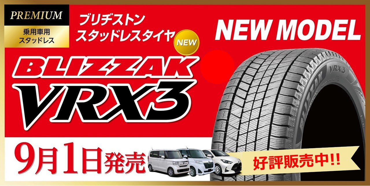 ブリヂストンのスタッドレスタイヤ「ブリザック」シリーズに 待望の新商品『VRX3』登場! ただいまタイヤ館神戸では「プレミアムセール」を開催中です! この冬スタッドレスタイヤをお考えのお客様は、この機会に 是非一度ご来店ください(^^)/ 信頼と実績のブリザックシリーズについて 詳しくはこち...