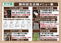 いつもタイヤ館神戸のホームページを ご覧いただき誠にありがとうございます。 現在無料の安全点検を実施しております! ①バッテリー点検 ②エンジンオイル点検 ③エアコンフィルター点検 ④ワイパー点検 ⑤ATF点検 その他:タイヤ点検、空気圧点検 点検のみのご来店も 喜んで対応させていただきます(...