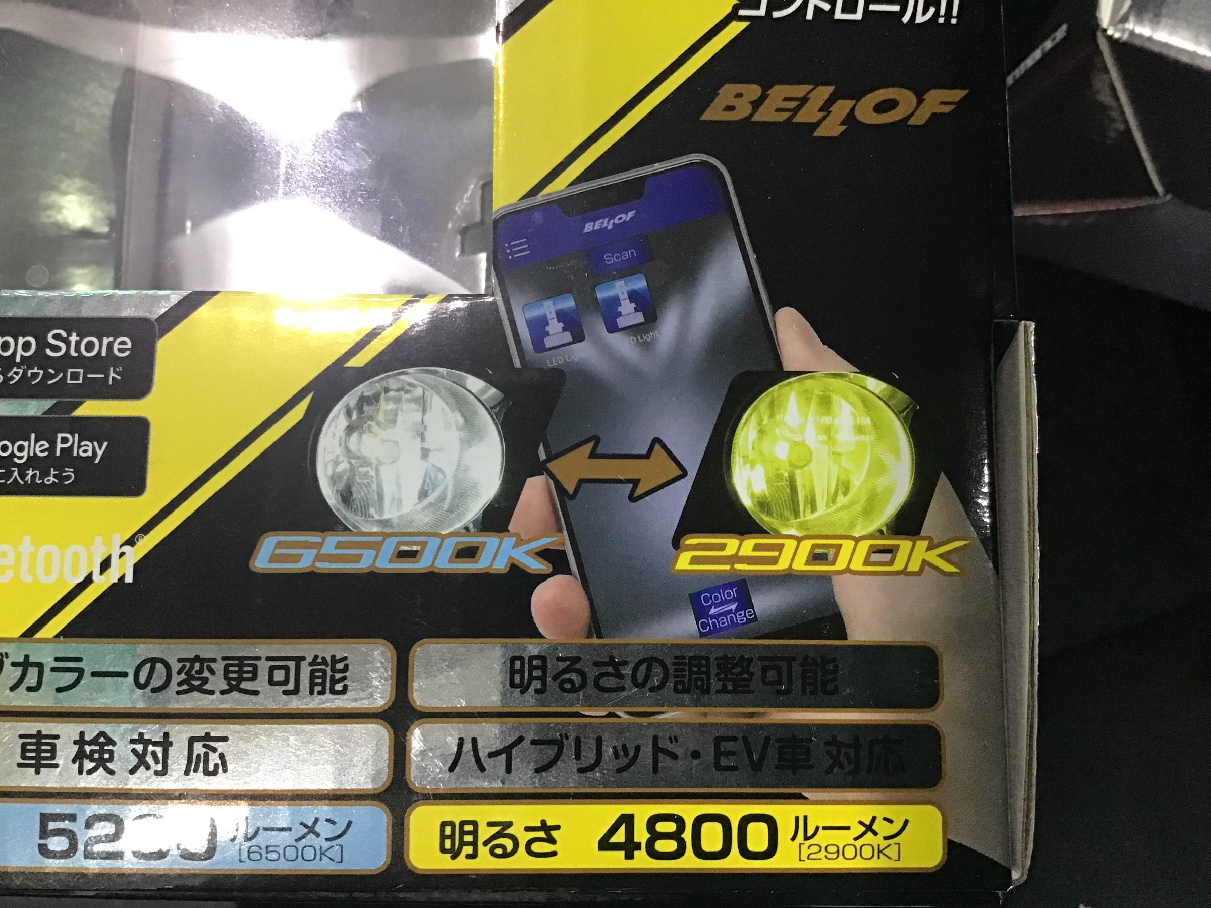 ベロフフォグランプキット スマホで、イエロー ホワイト 切り替えできます。
