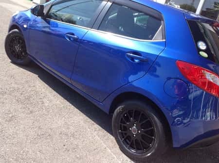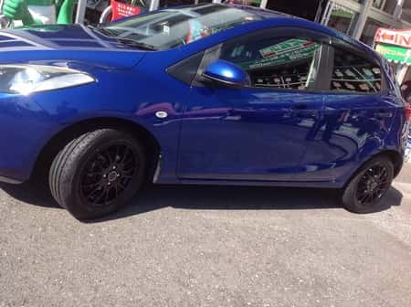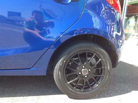 デミオ インチアップ! ポスト 2015年11月7日 マツダ デミオ 15インチアップ! ホイルは、クリエイティブデイレクション ブラック色 半艶がイイ感じ!タイヤは、もちろん エコピアEX20C コンパクトカー専用!車体のブルー色に、めっちゃマッチしています^_−☆