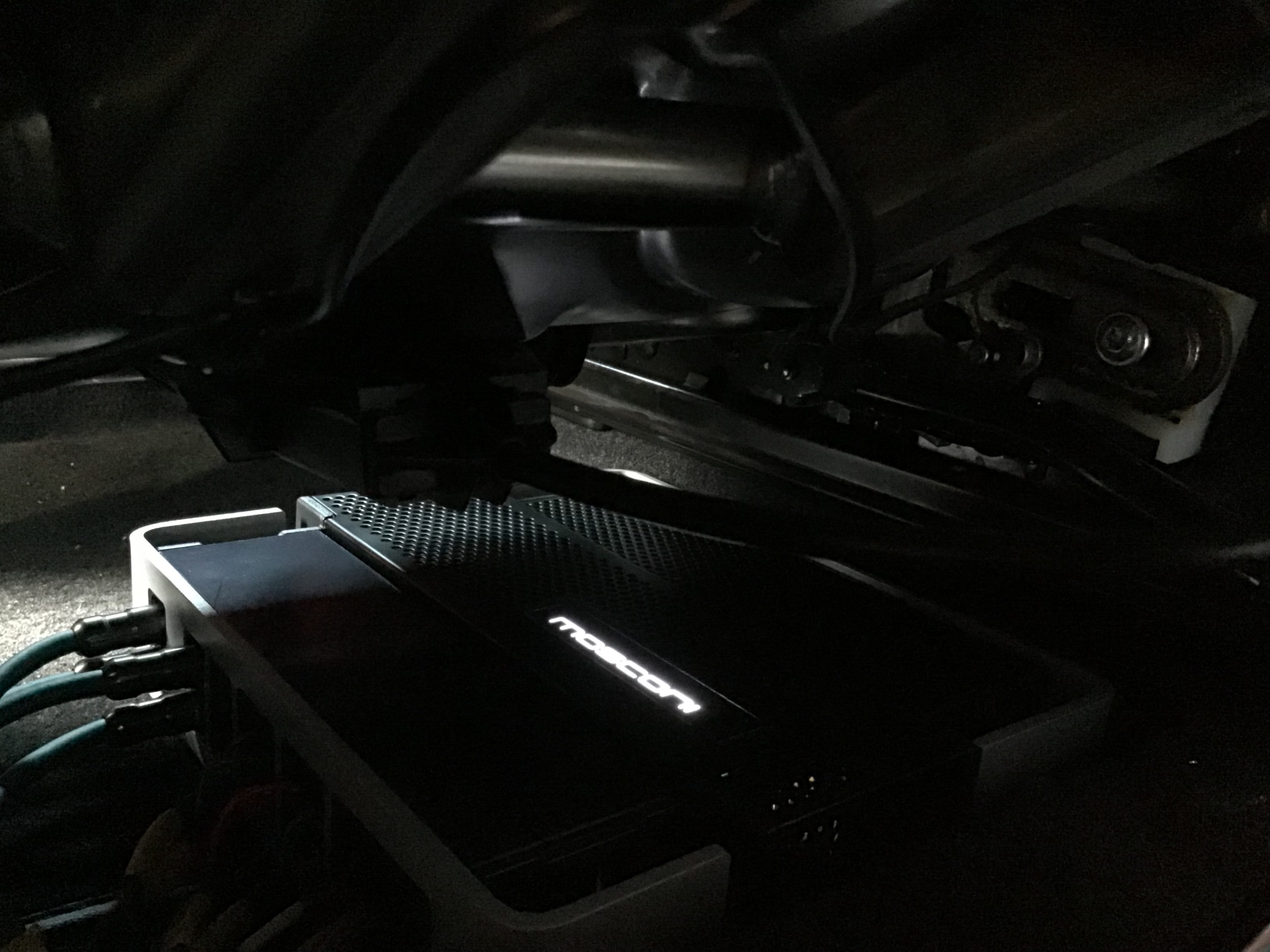 パワーアンプはこちらモスコニ pro4/10 シート下に収まるコンパクトで超ハイエンド!しかもこちらもイタリア製!