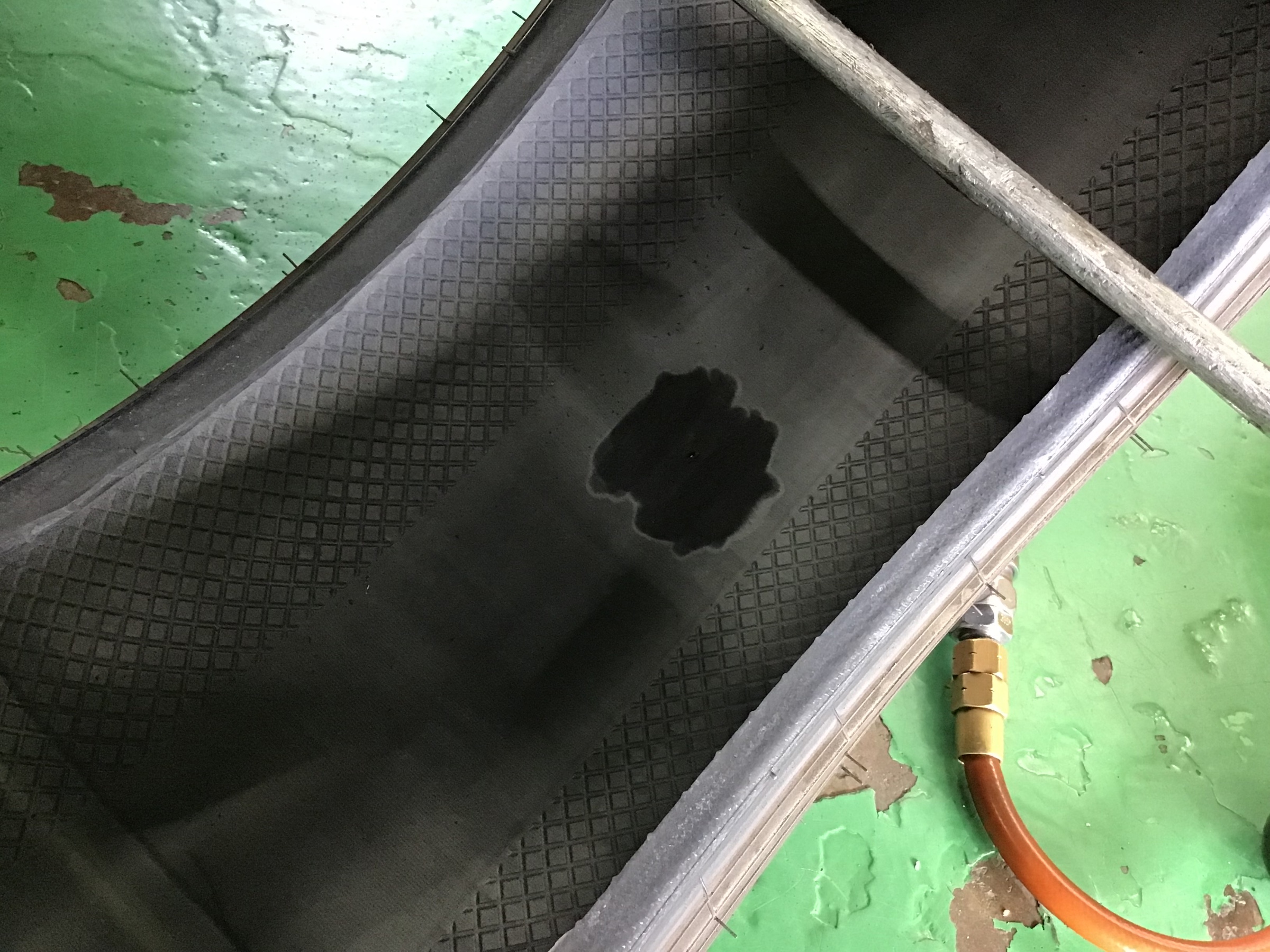 パンクの修理の仕方も大きく分けて2種類有るのですが、1つ目は外から処置する外面修理(応急処置)とタイヤの内側から処置する内面修理です。当店では内面修理を推奨しております。