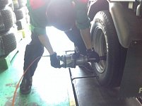 トラックのタイヤ交換は、体力勝負だ^_−☆