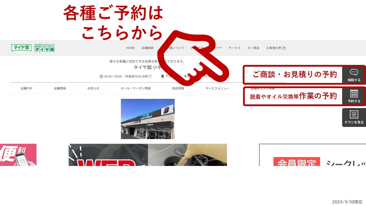 タイヤ館はHPやアプリからタイヤのご商談やご相談の為だけの予約をとることができます!