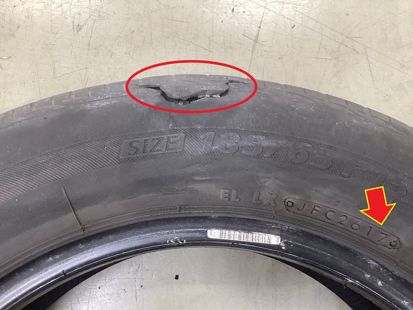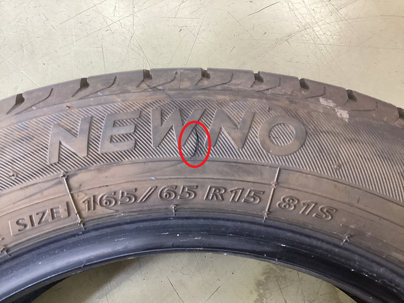 【事例②】交換して間もないタイヤですが、カットキズから漏れていました・・・(◞‸◟)