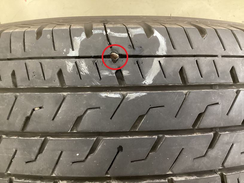 【事例①】かなり長いクギが刺さっていましたが、修理可能でした(^_^)/