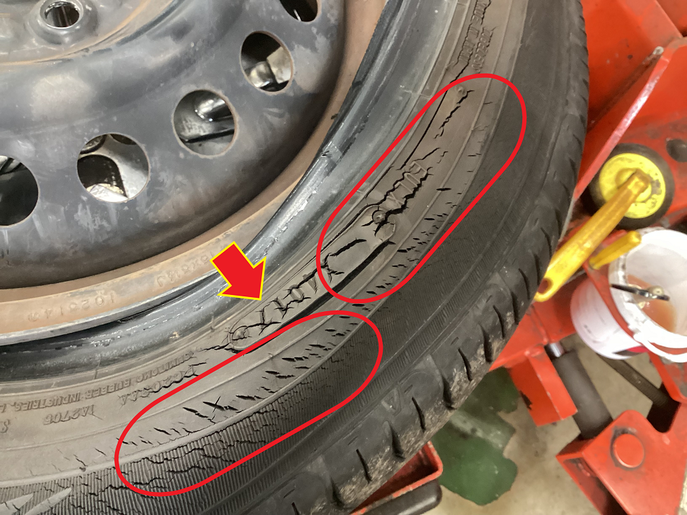 『経年劣化』により、タイヤクラック(ヒビ割れ)が発生してきます((+_+))