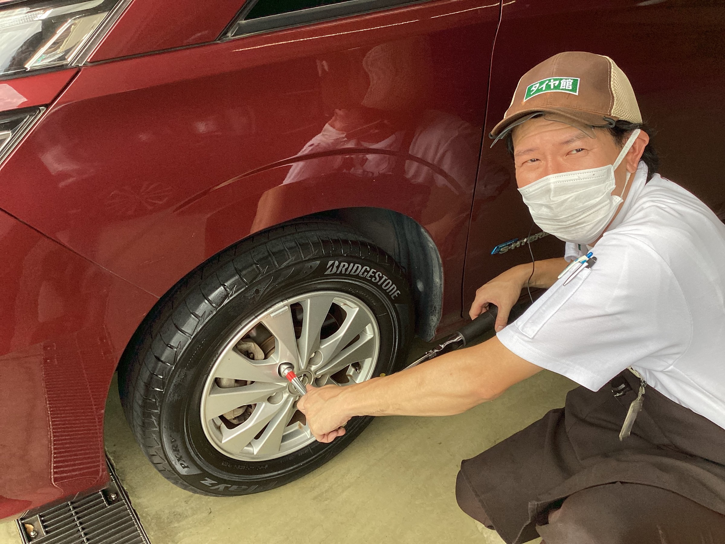 タイヤ館では、タイヤ購入後に100km程度走行したら最後の点検を行っています!!