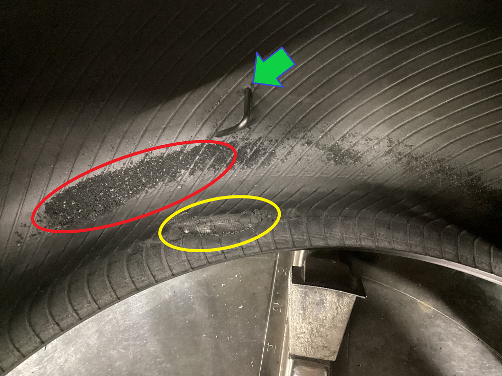 ◆パンク点検② 六角レンチが刺さっていましたが内傷があった為、修理不能・・・(◞‸◟)