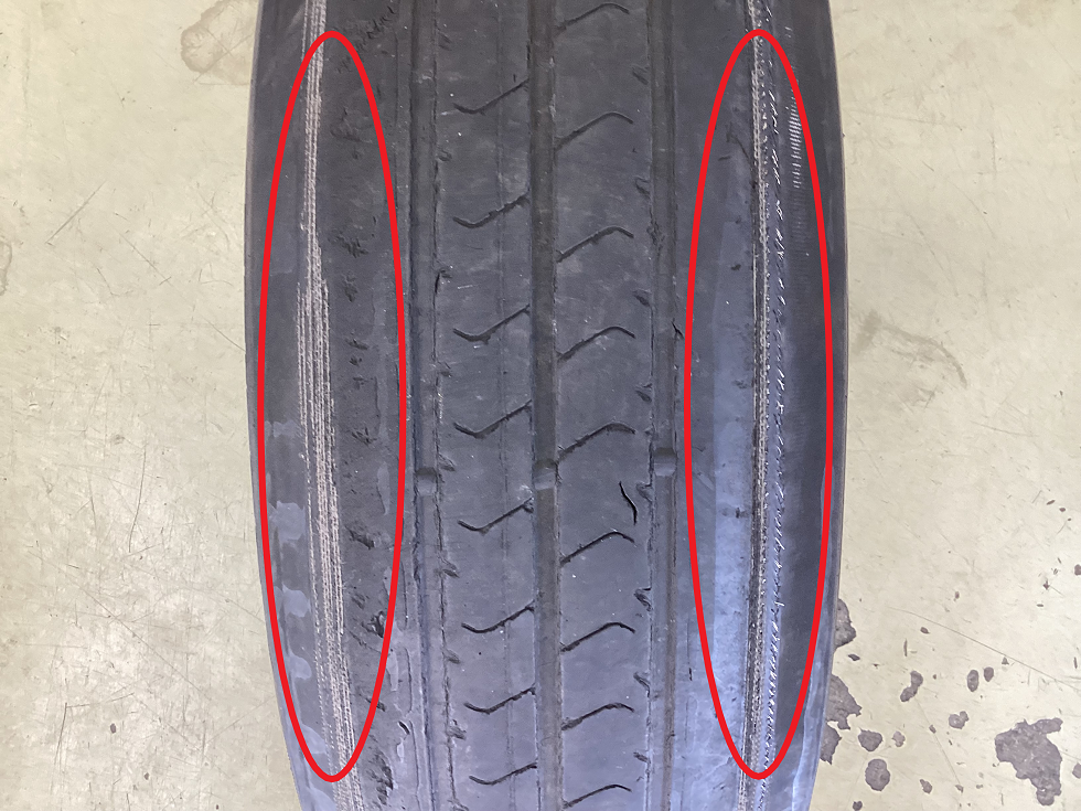 ◆偏摩耗 原因:空気圧調整不足・アライメント不良 等々・・・(◞‸◟)