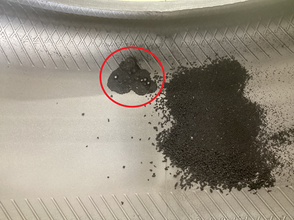 修理痕(〇印)の周りには、ゴムの削られたカスが多く発生していました・・・(◞‸◟)