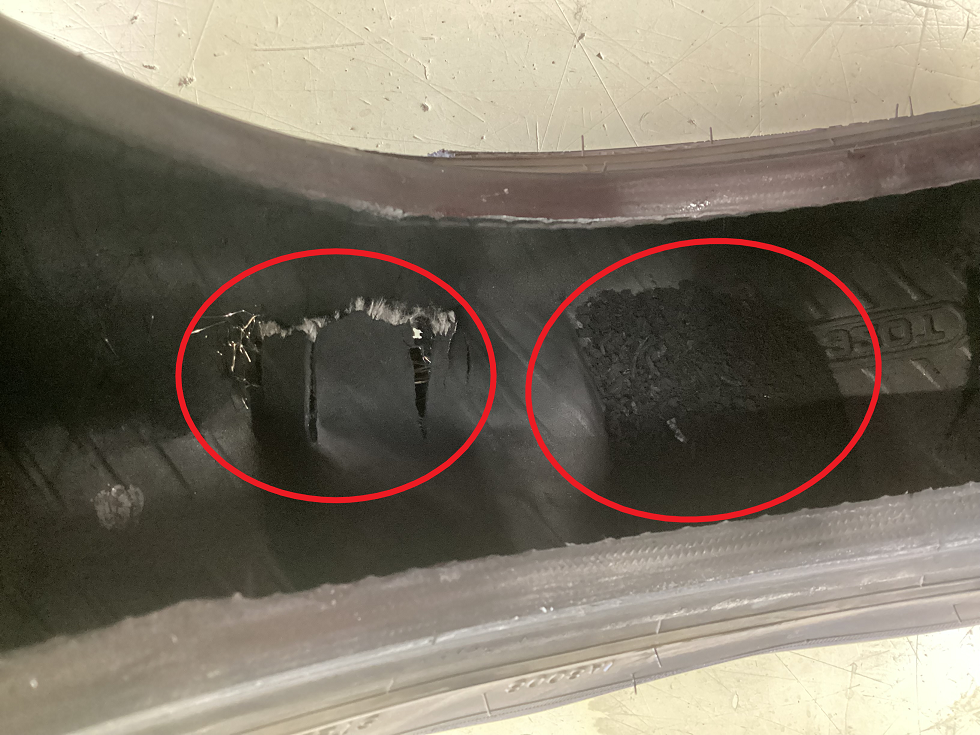 タイヤ内部も低内圧走行により、ゴムが削られて溜まっています・・・