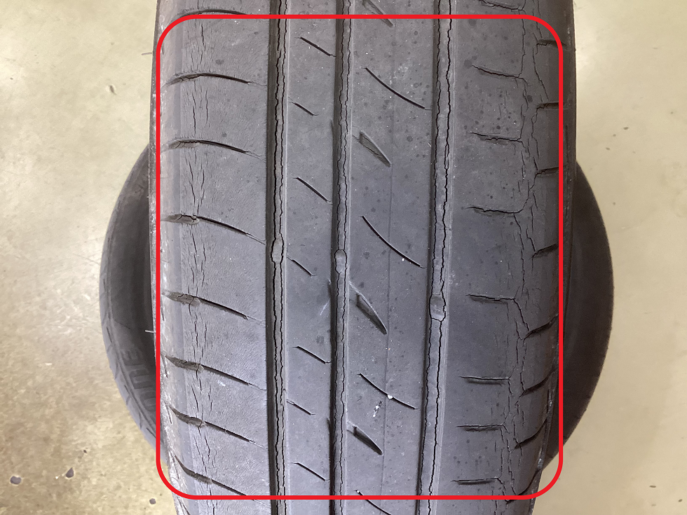 ③タイヤクラック 原因:ゴムの経年劣化により、ヒビ割れが発生する現象