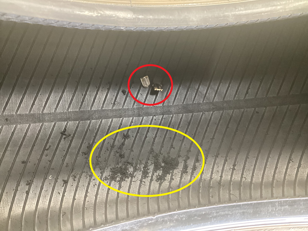 タイヤ内部も低内圧走行で発生したゴムの削りカスが確認できました・・・