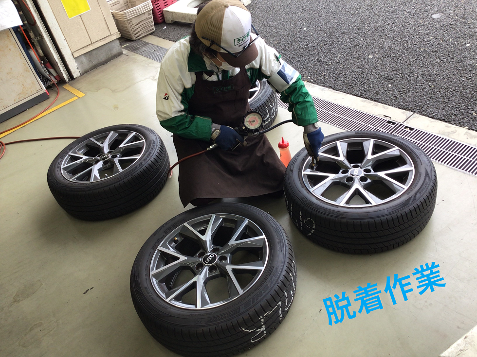 タイヤ館小平店ではスタッドレスタイヤから夏タイヤへの履き替え作業(脱着作業)が