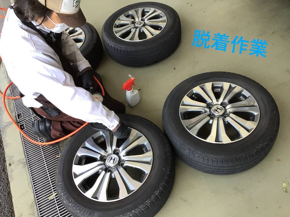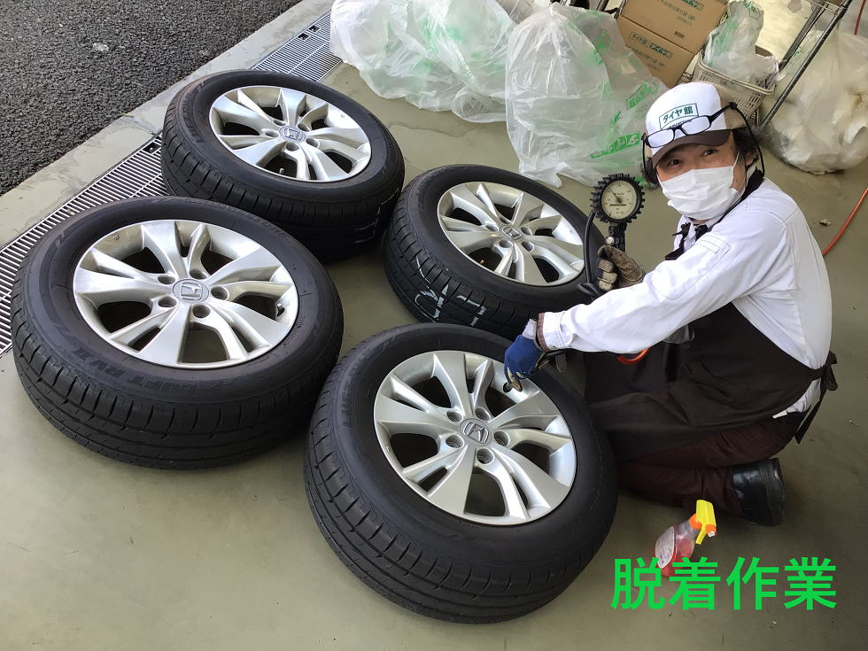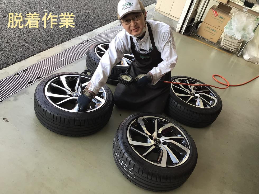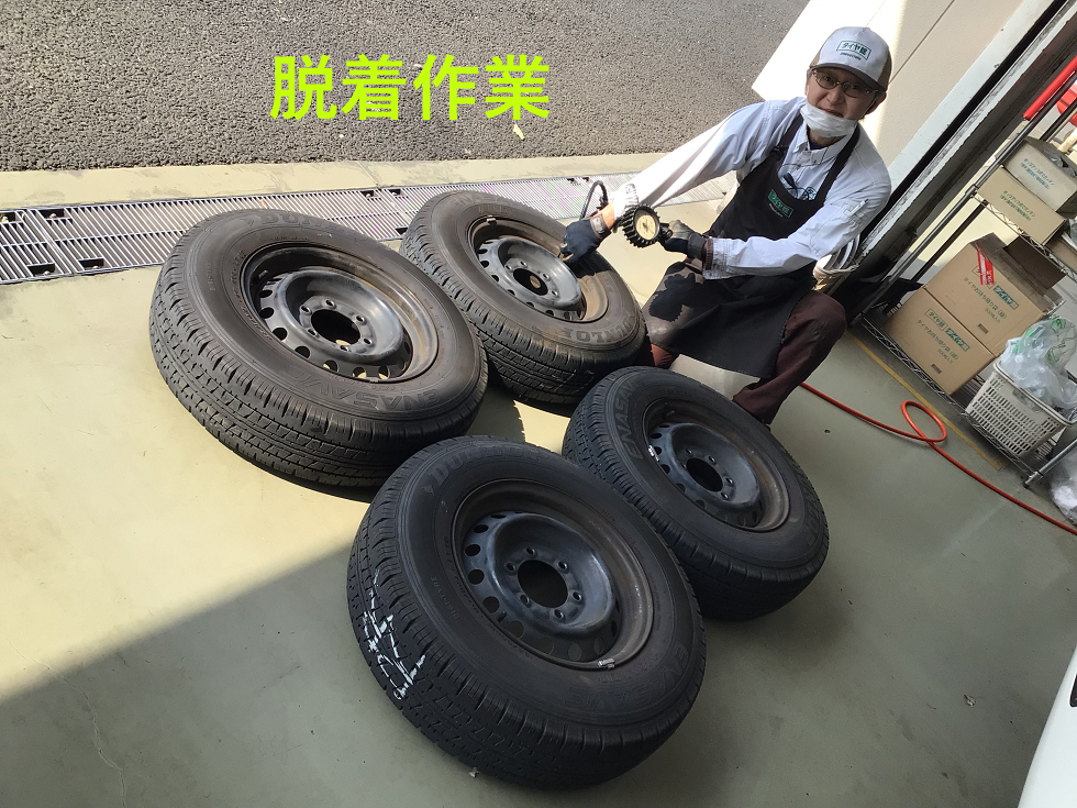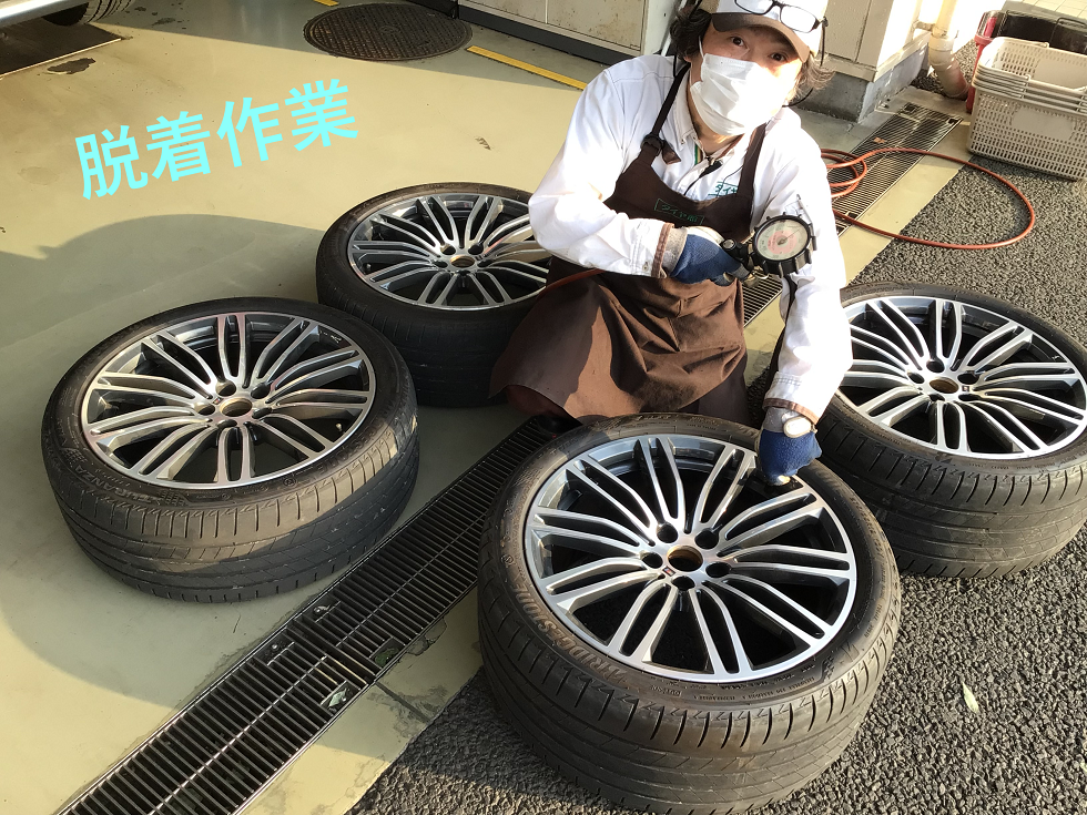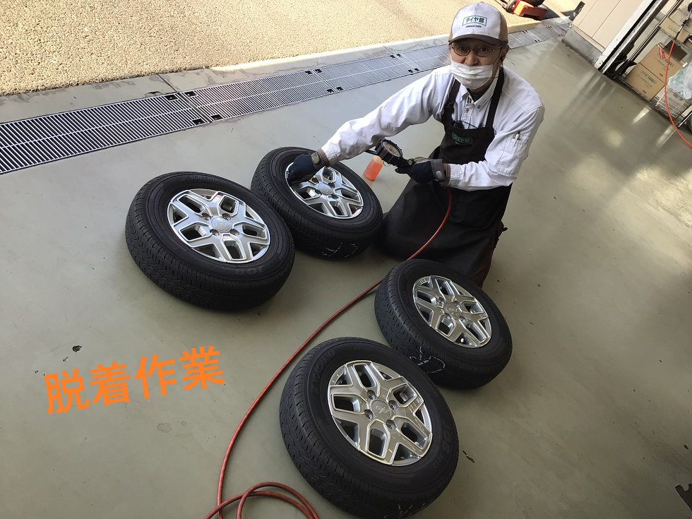 4月になってタイヤ館小平店ではスタッドレスタイヤからの履き替え作業(通称:脱着作業)が