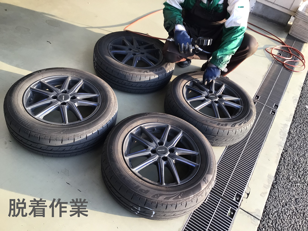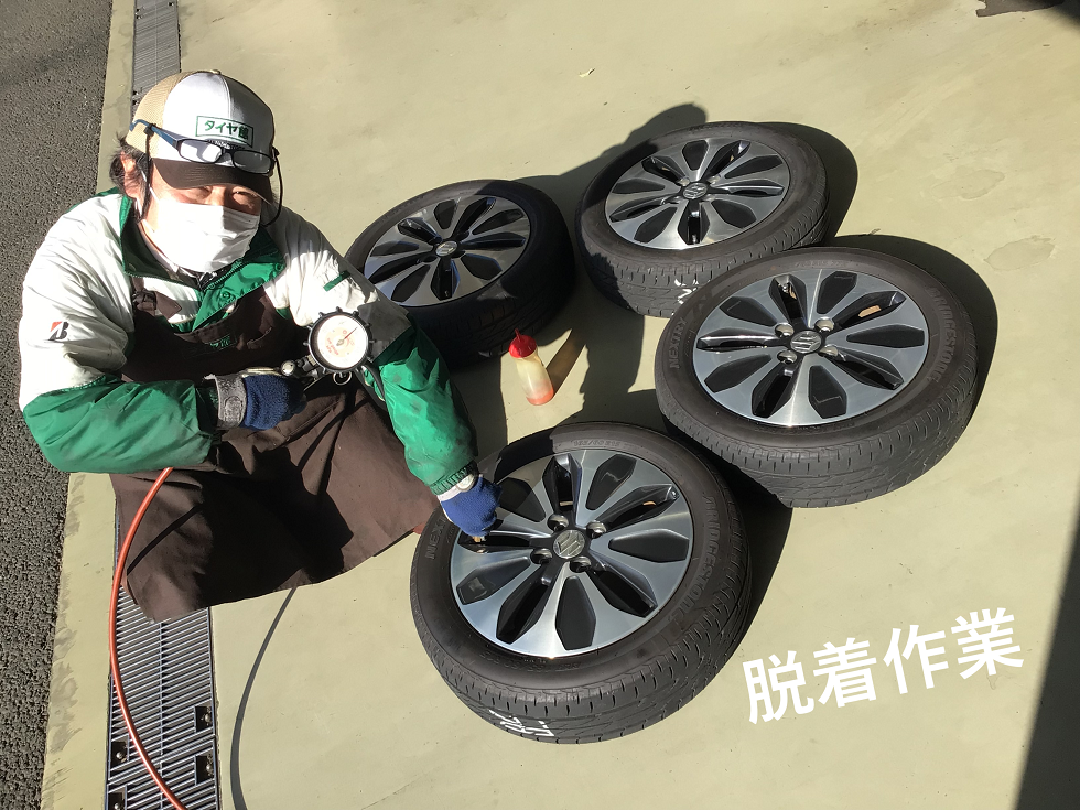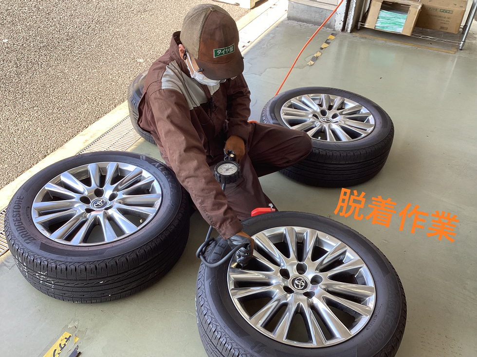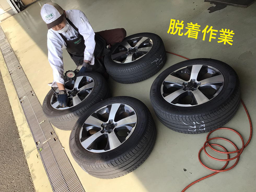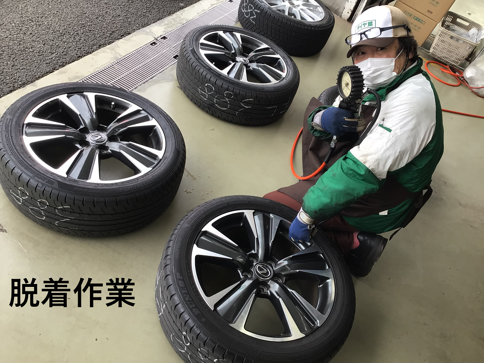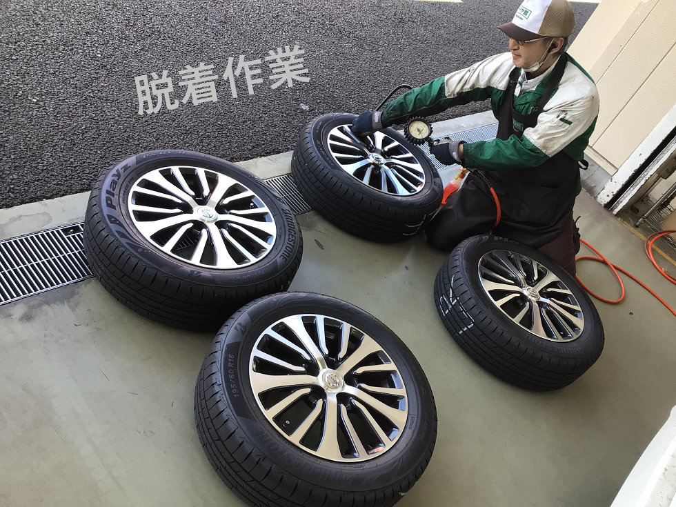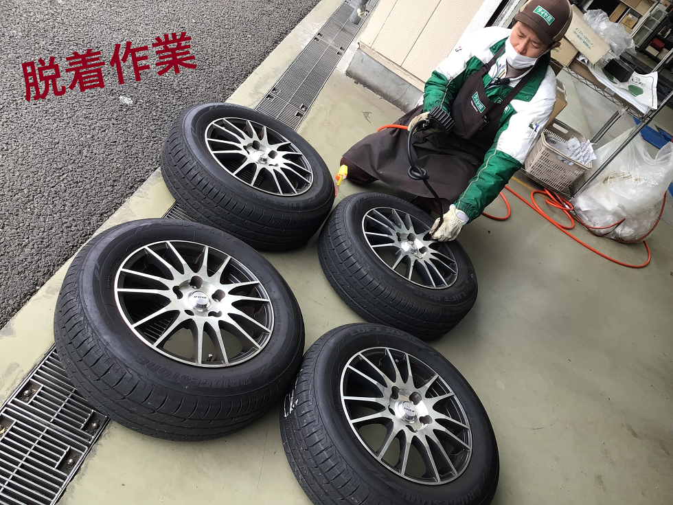 4月になってタイヤ館小平店ではスタッドレスタイヤからの履き替え作業(通称:脱着作業)が