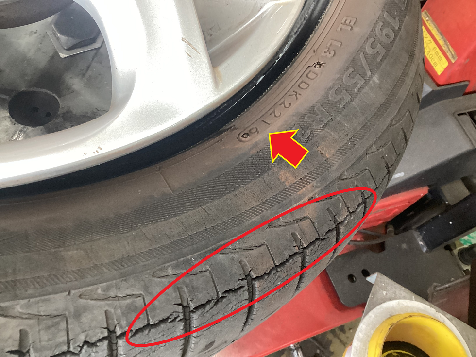 タイヤはゴム製品なので、長く使用すれば劣化し、硬くなり、ヒビ割れを起こします!!