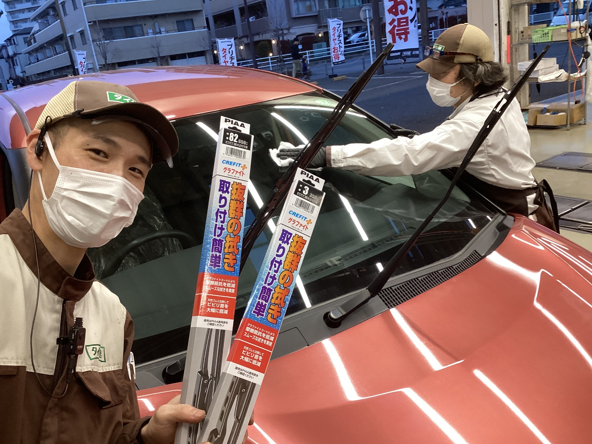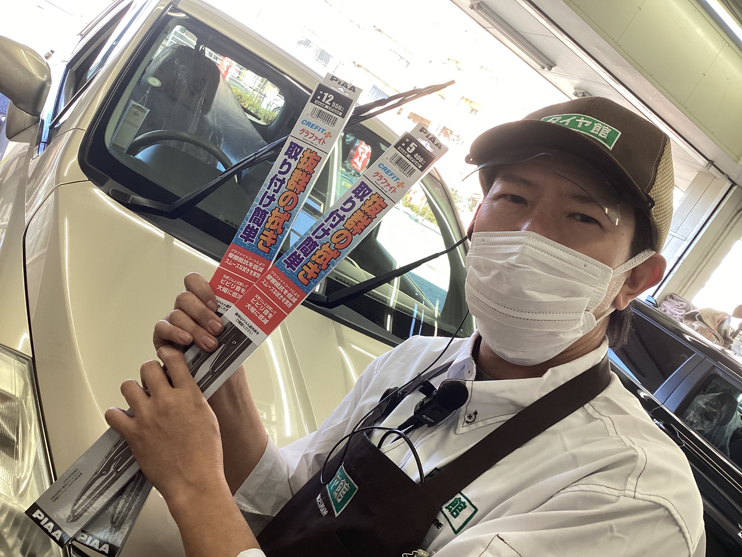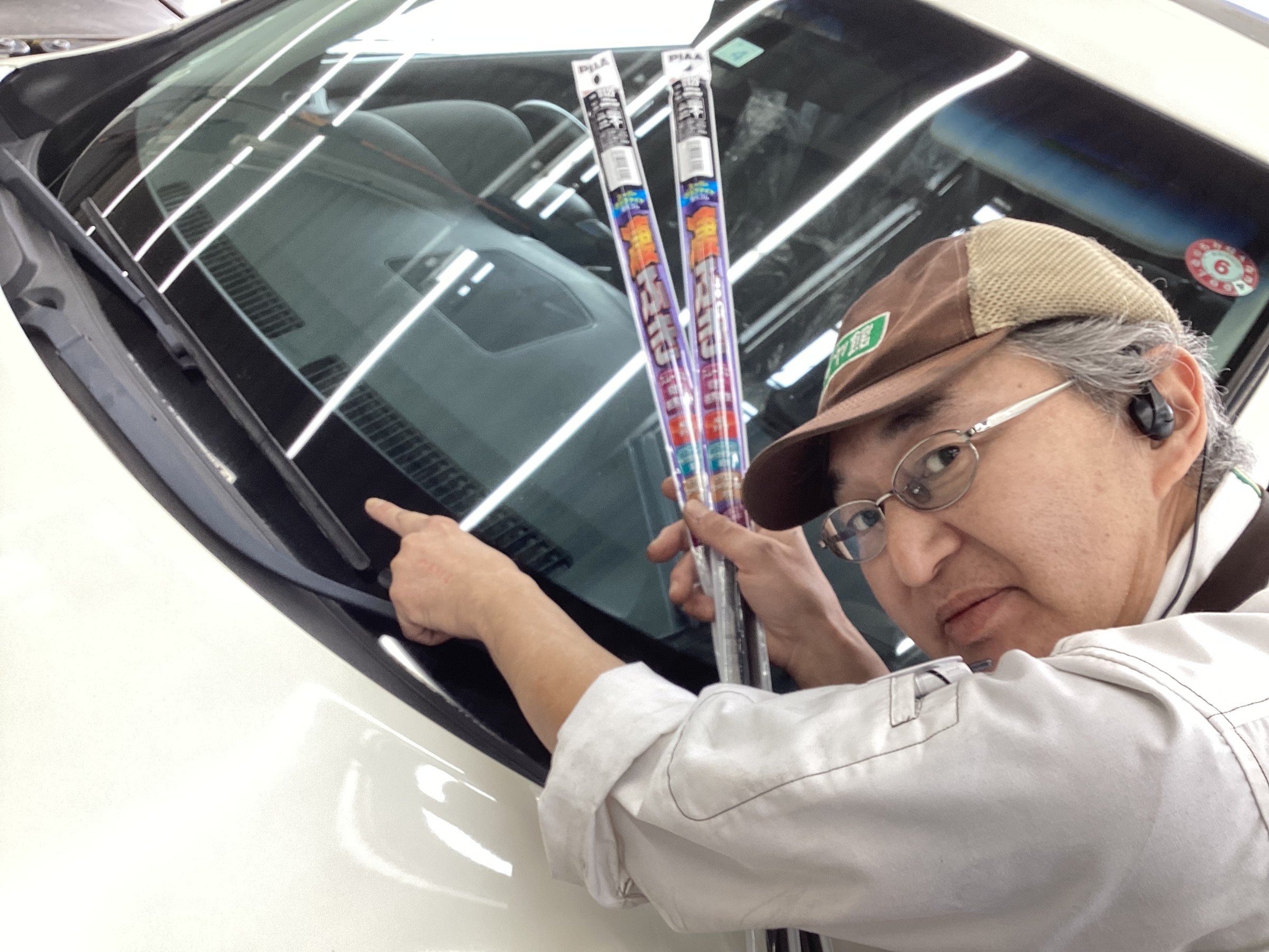 ①ワイパー交換 ⇒ ワイパーの交換目安は年1回です。ビビり音が出たら交換の合図!!