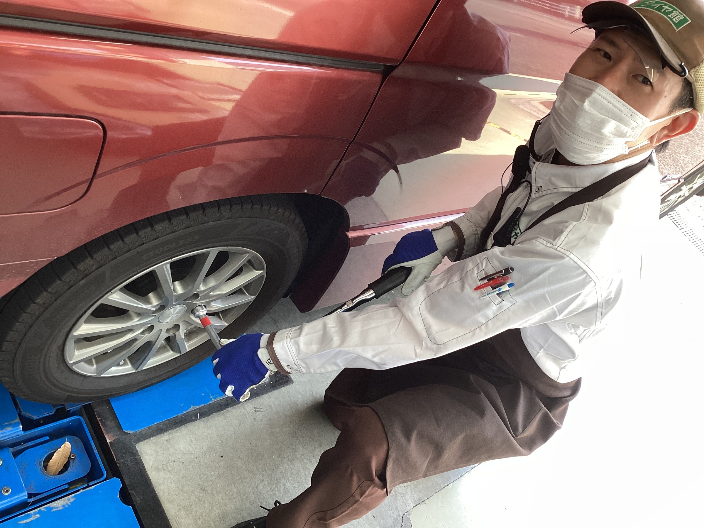 タイヤ館小平店では、タイヤ購入後に100km程度走行したら最後の点検を行っています!!