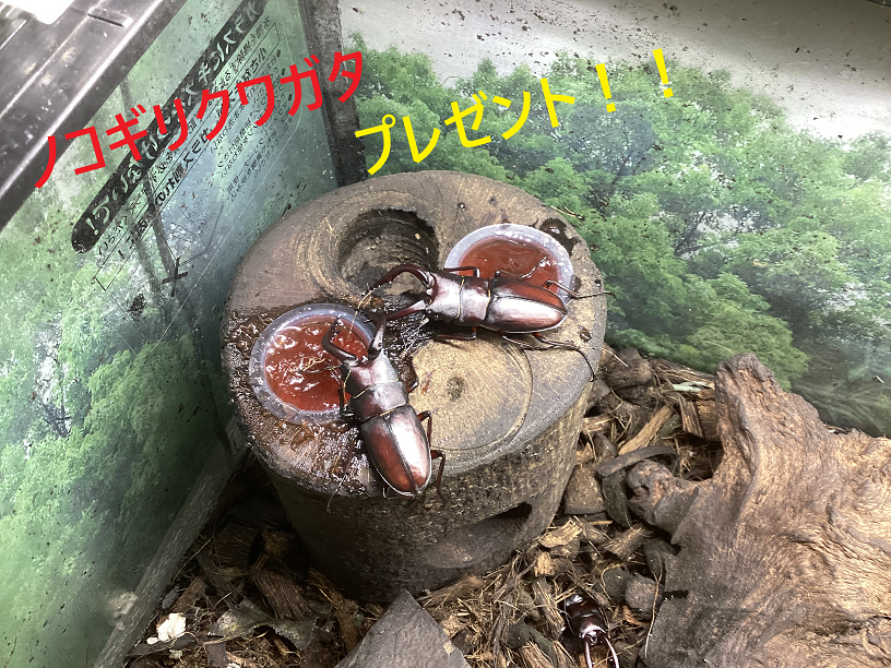 今年は『ノコギリクワガタ』&『ヒラタクワガタ』(少数)のみプレゼントになっています(>_<)