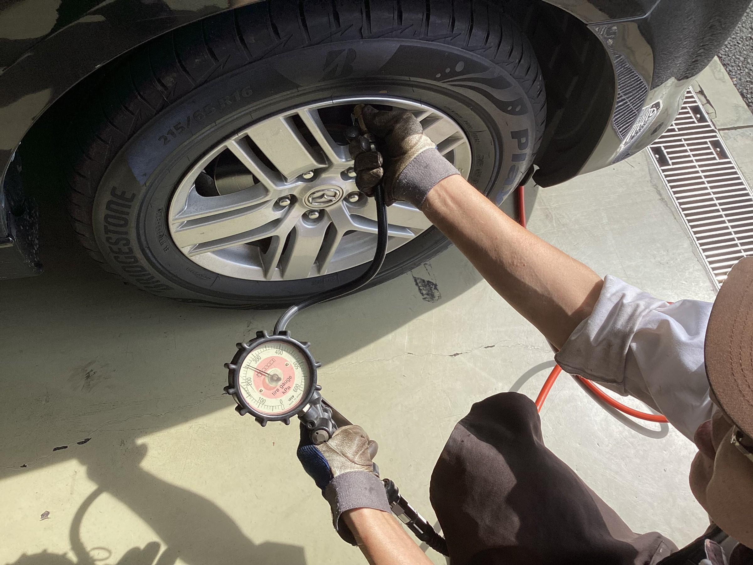 タイヤ点検・タイヤ空気圧充填