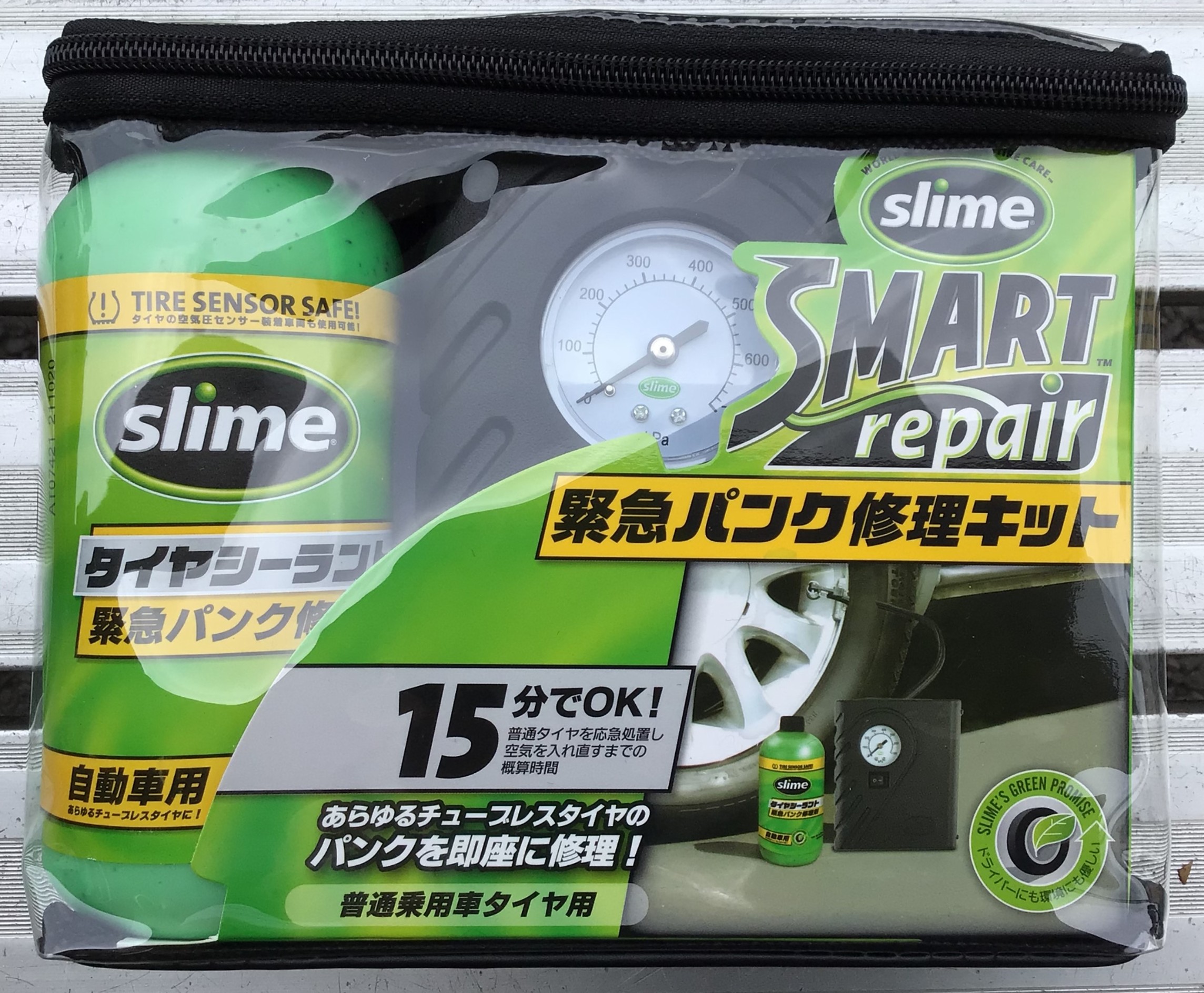 1回のみの使い切りですが、『パンク修理剤』を準備しておくと便利でしょう!!