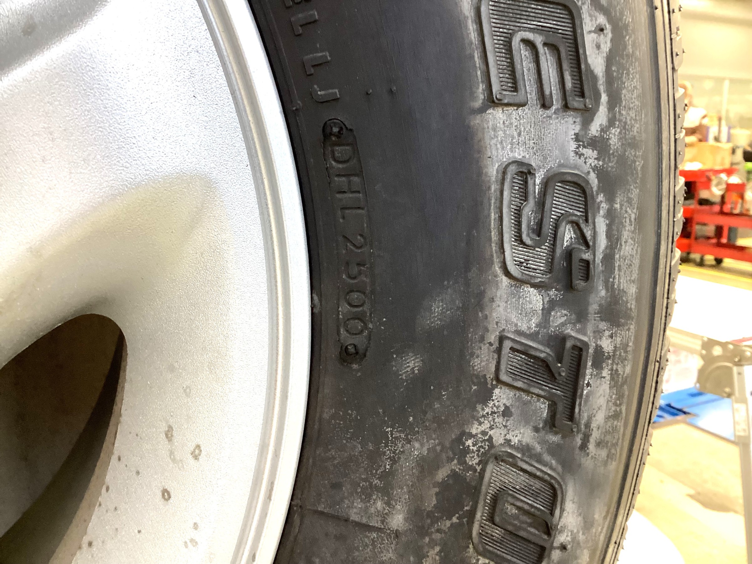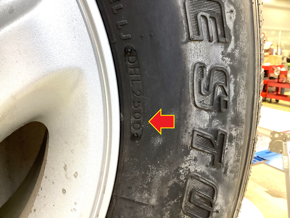 先日、来店されたお客様の背面タイヤは新車装着タイヤでセリアルが2000年25週の生産品!!