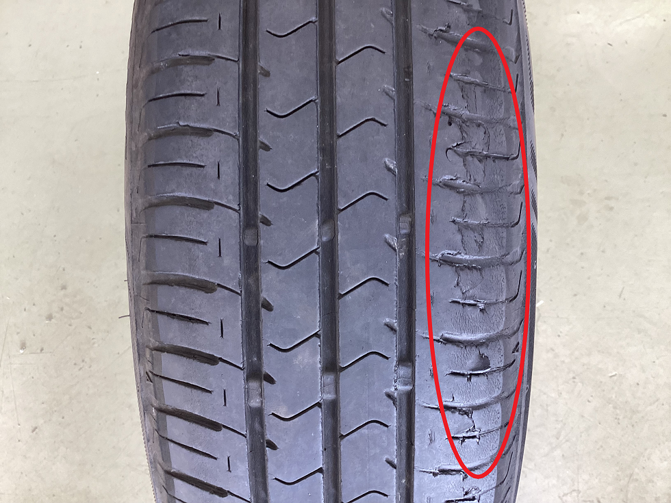 【チッピング偏摩耗】タイヤのトレッド面が、千切られたように摩耗しています!!