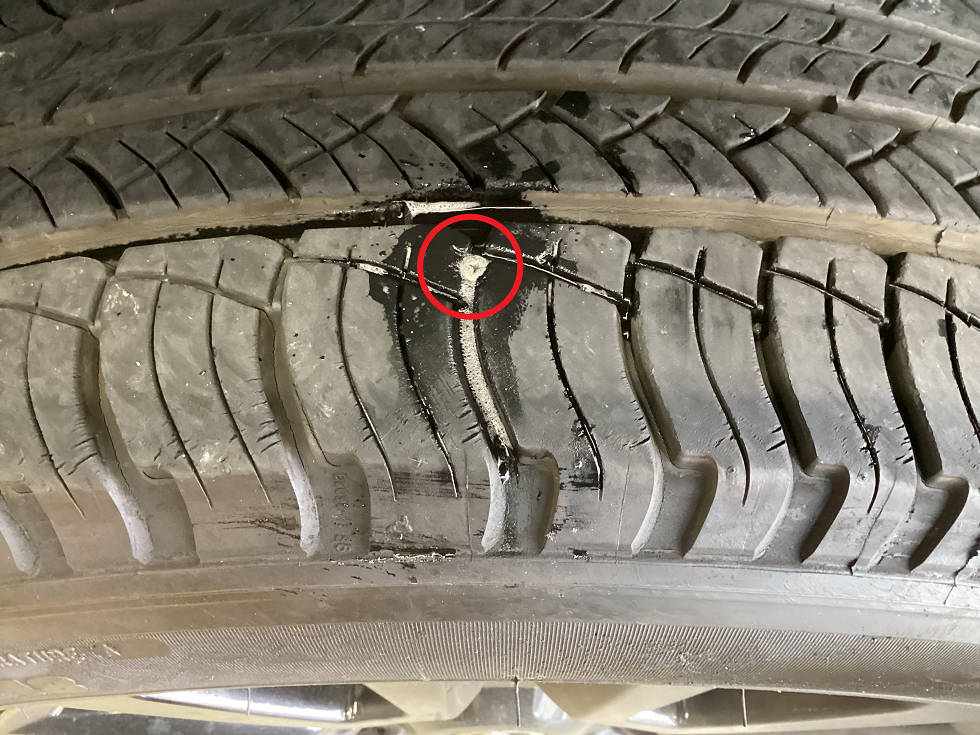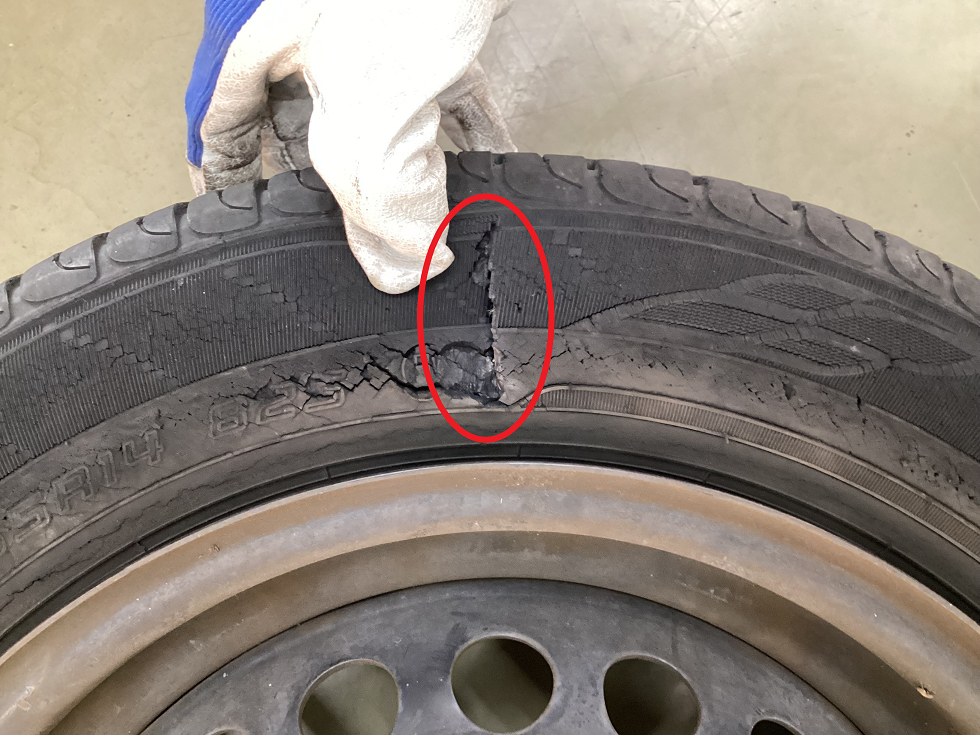 【サイドカット】タイヤの側面にキズが入り、空気が急速に抜けてしまいます!!
