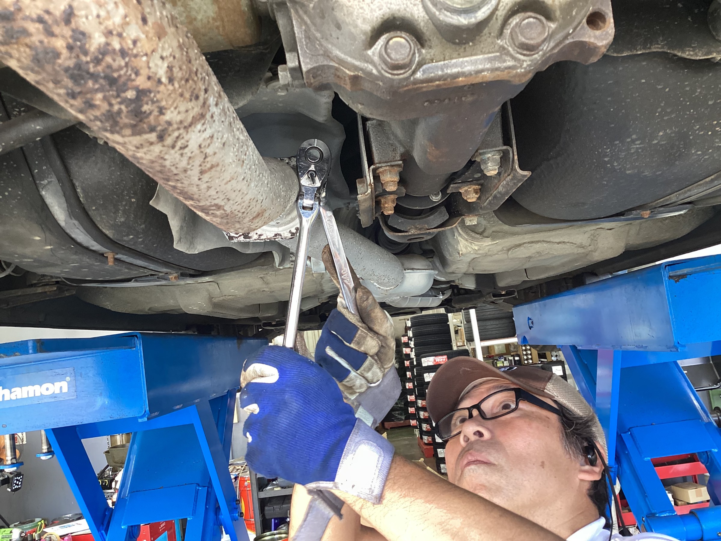 早速、作業スタート(^_^)/ まずは、マフラーブッシュ&ネジ部分に潤滑剤を散布!!