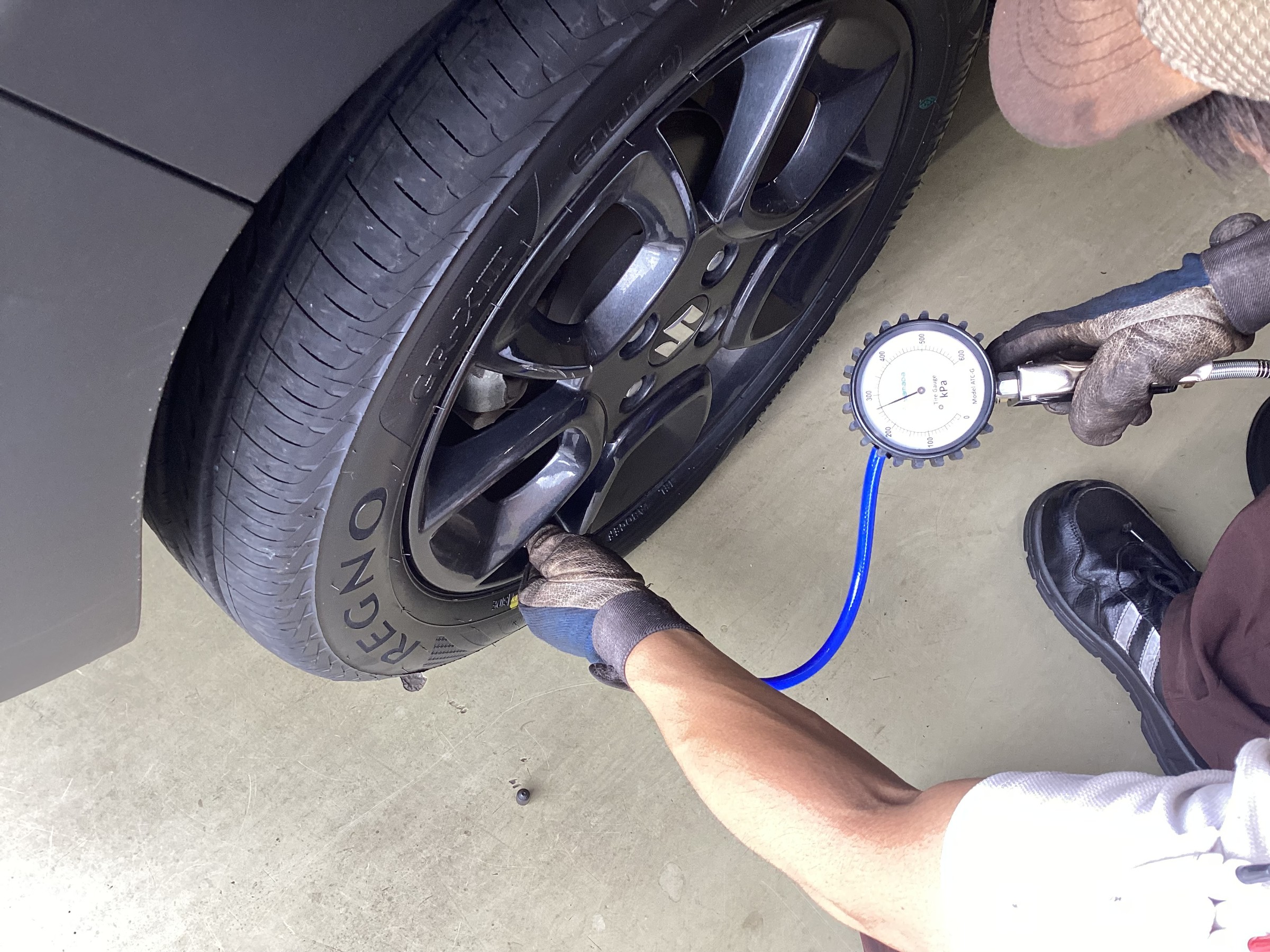 タイヤ館小平店では、タイヤ購入後に100km程度走行したら最後の点検を行っています!!