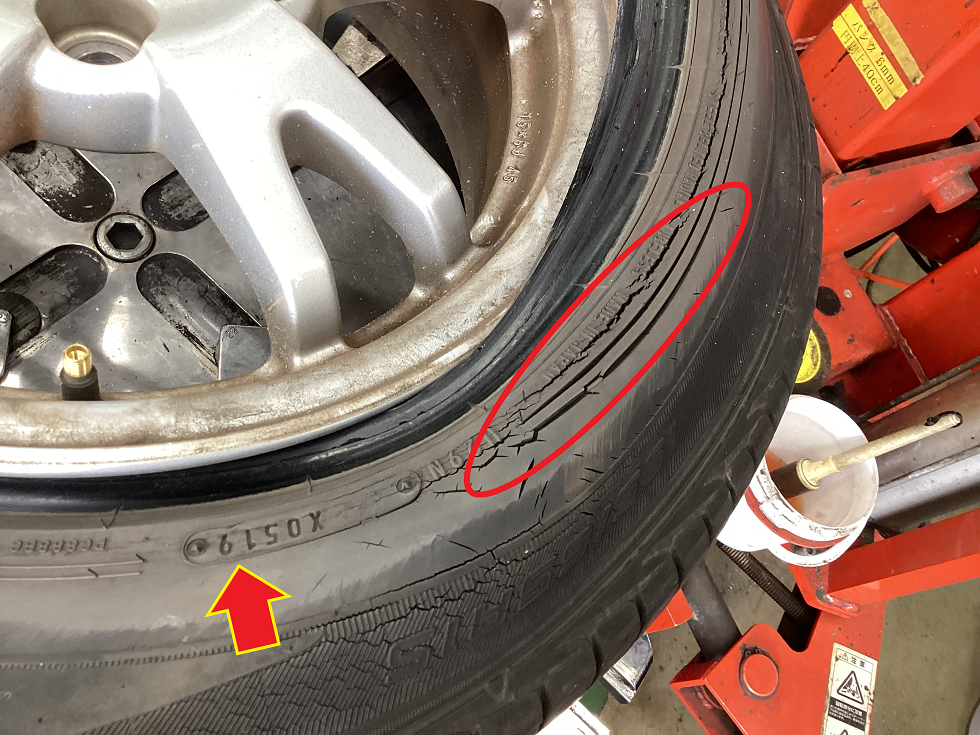 【原因】タイヤの経年劣化により、ゴムがヒビ割れてしまう現象(2019年セリアル)