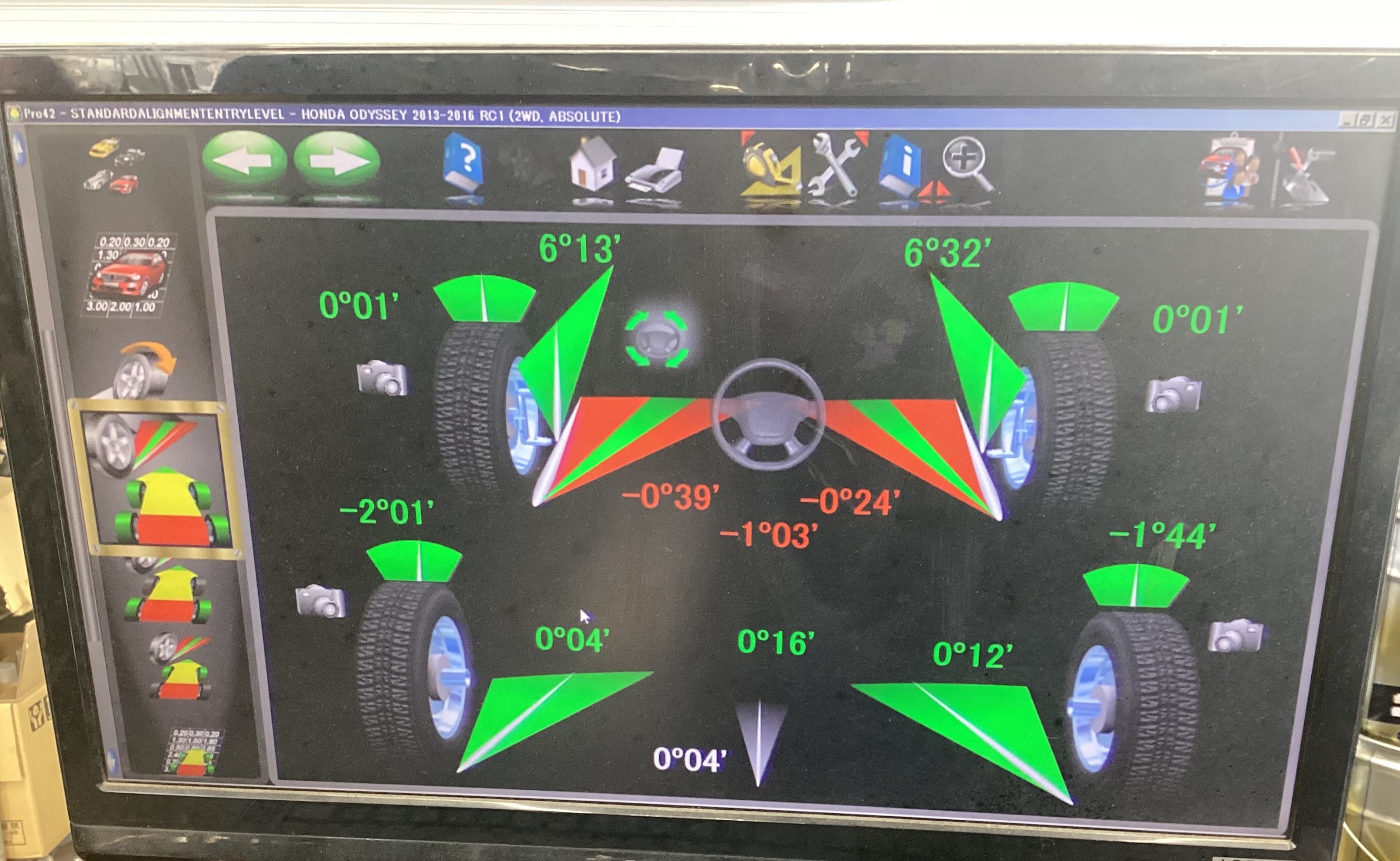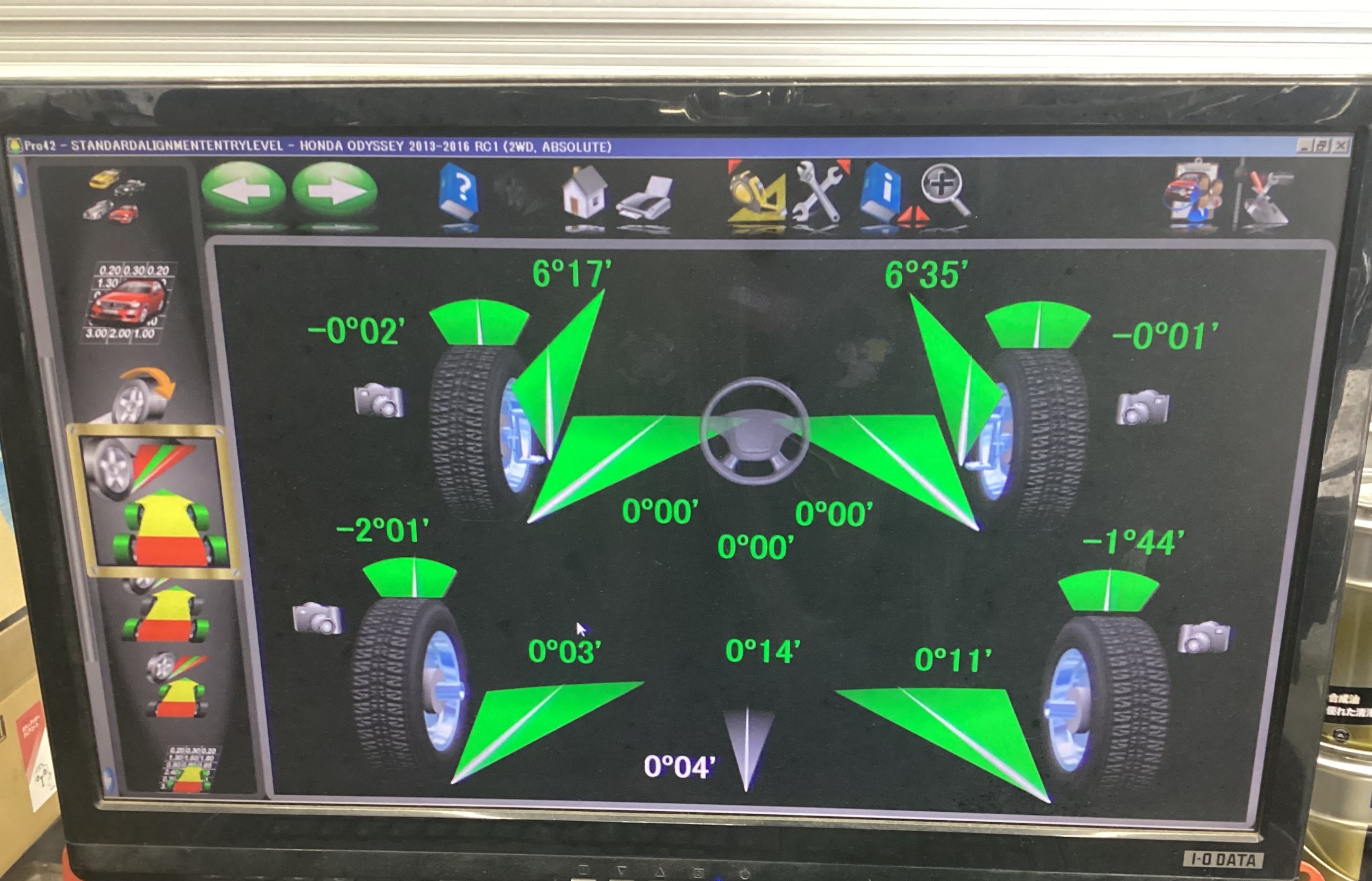 緑字になり左右差もゼロに!! 他の調整出来ない角度も全て許容範囲内に収まっています!!
