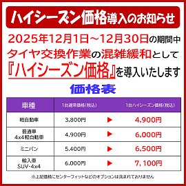 タイヤ履き替え作業【ハイシーズン価格】導入のお知らせ