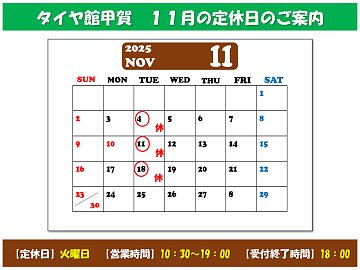 タイヤ館甲賀 11月の営業日のご案内☆彡