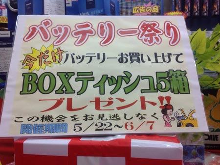尚、大好評中のバッテリー祭りは引き続き、6/7(日)までやってまーす(^○^)