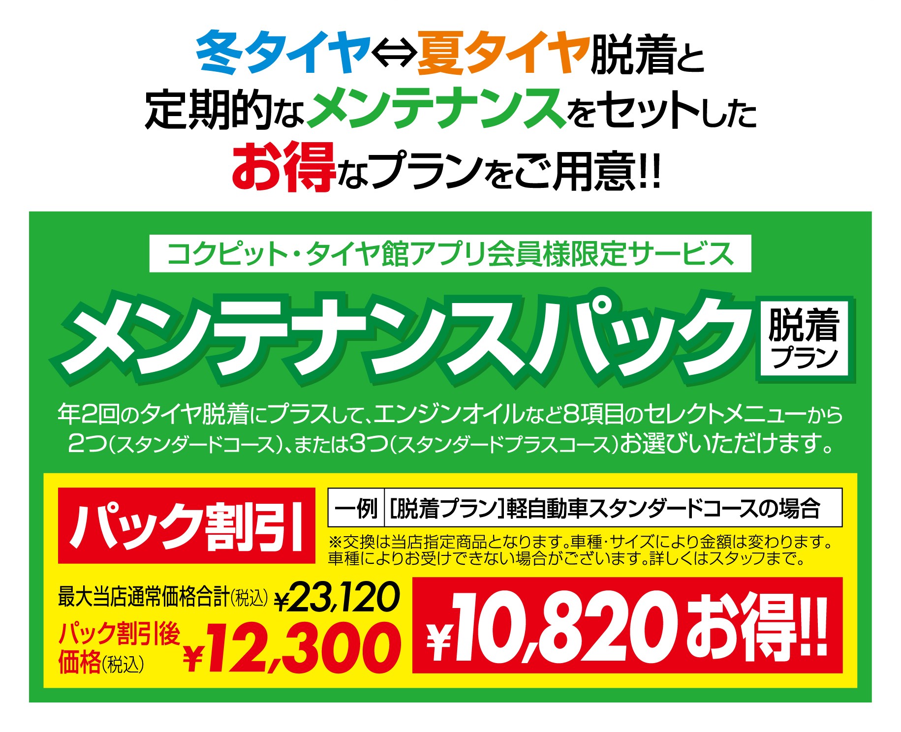 タイヤ履き替え(タイヤのみ)