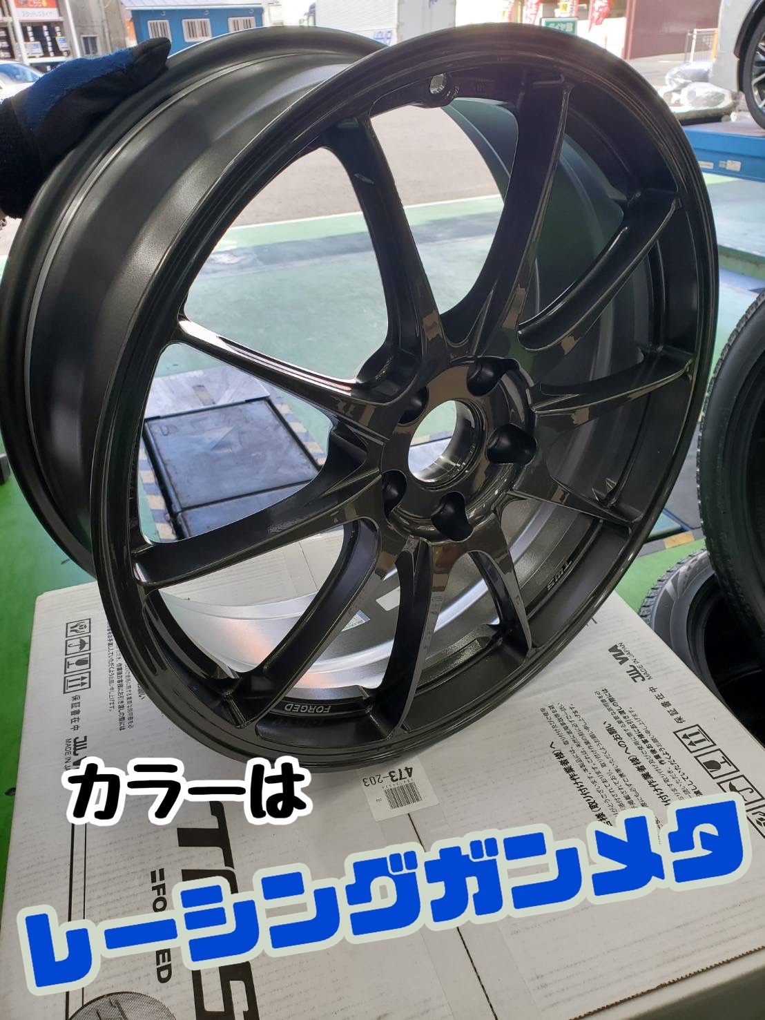 ホイールのカラーはレーシングガンメタです!