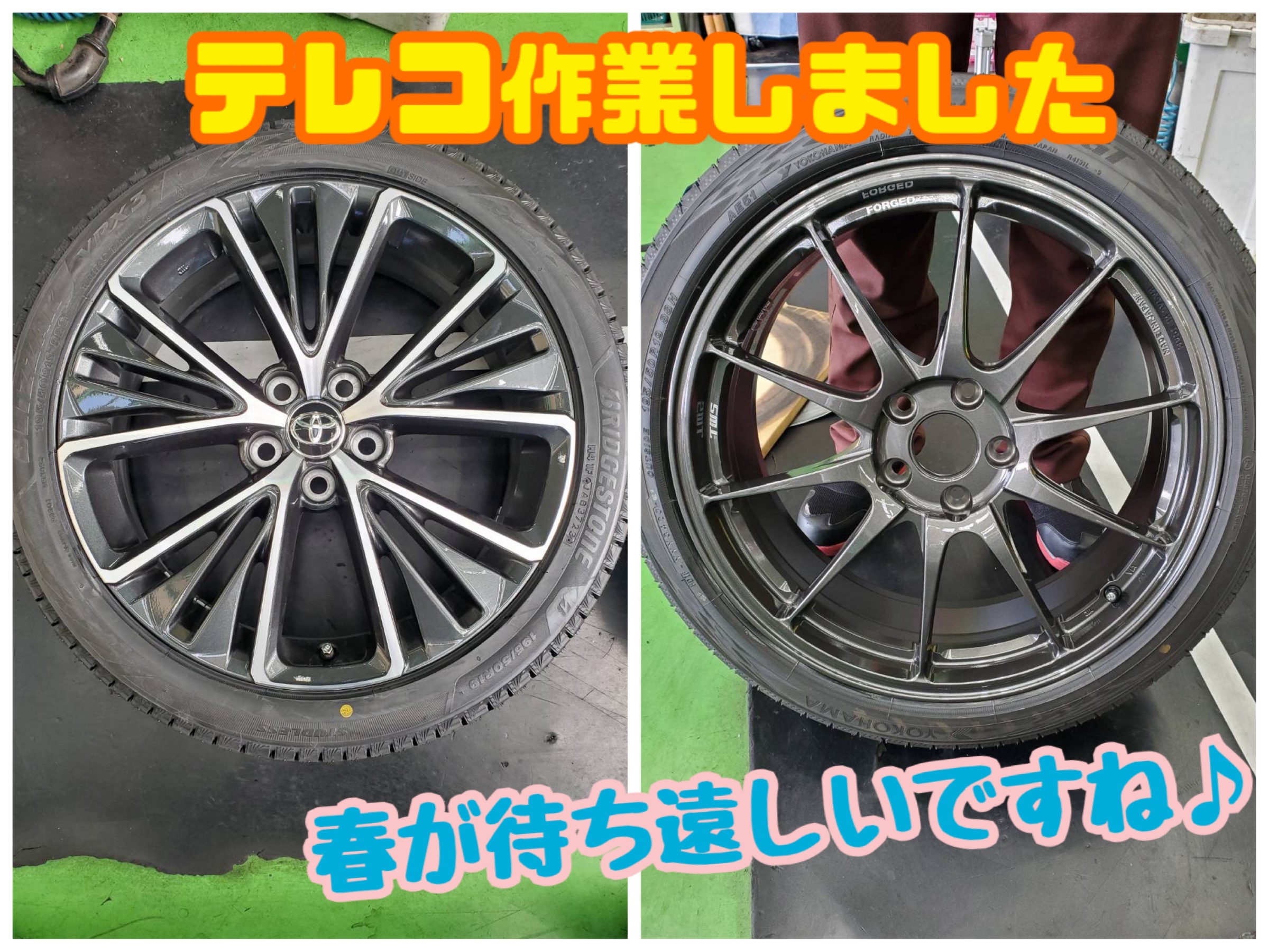 新品アルミを夏タイヤにセットする、クロス装着にしました!!