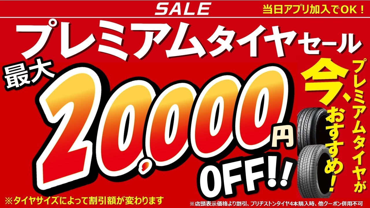 最大20000円引きのプレミアムタイヤセールも継続中!!