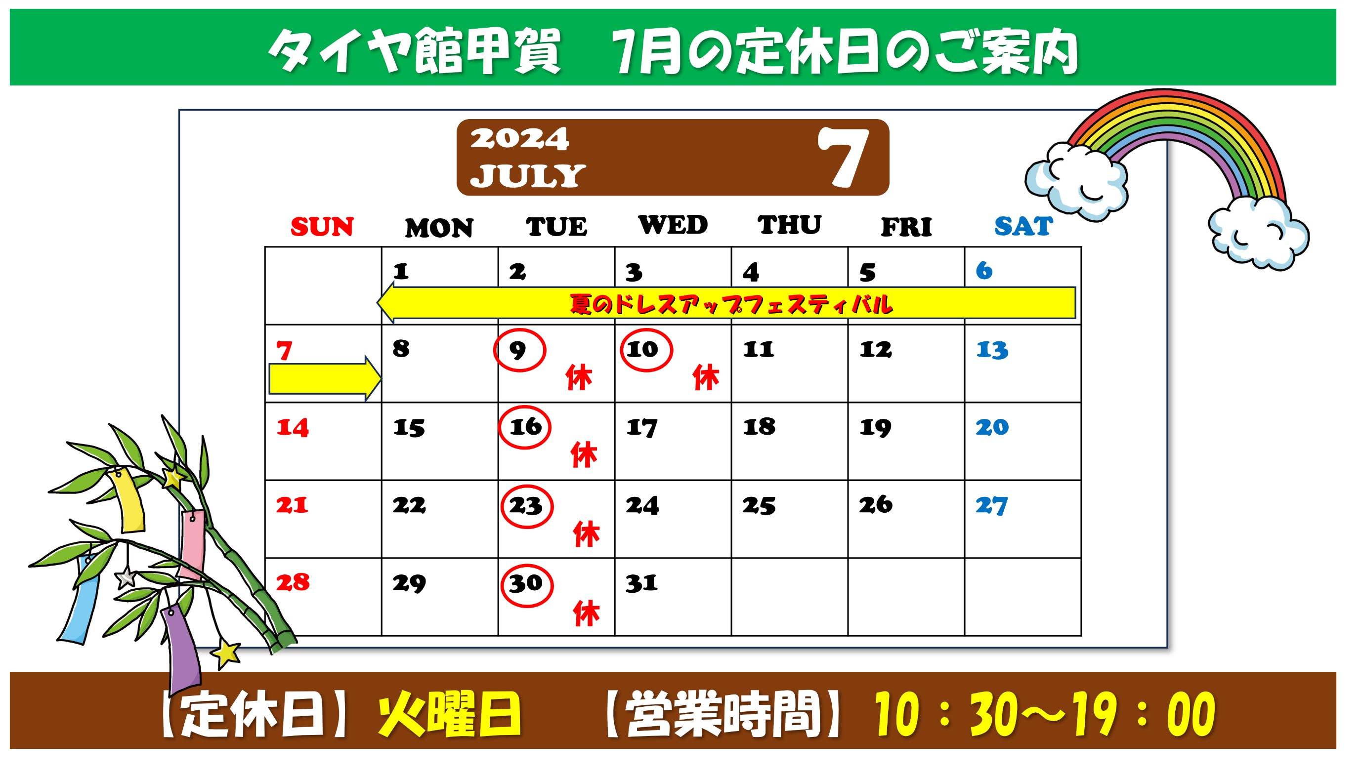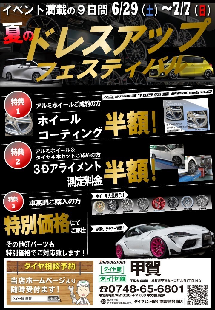タイヤ館甲賀は6/29(土)~7/7(日)まで