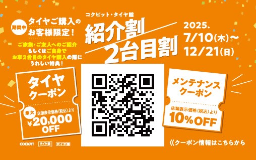 ご家族も!ご友人も!タイヤやメンテがお買い得!【紹介割/2台目割】☆彡