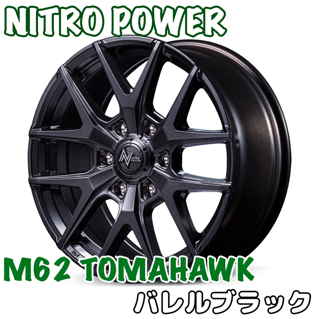 2025年NITRO POWER 新作ホイールは6ホール専用設計の6クロススポークデザイン。ナイトロパワーのテーマであるアメリカンヘビーデューティーを演出するため無骨に配置されたメインのクロススポークとギア感をイメージしたディテールデザインが組み合わされたM62トマホーク。特徴的なクロススポークは直線的なラインで構成しスポーク天面はリムエンドまで伸ばしきり勢いのある大口径デザインに。また一段下がったナットホール面からスポークサイドリブを組み合わせ、上下でタフな立体感を視覚的に見せながらもスポーク全体の印象はスッキリとさせる。力強くダイナミックなスポークボリュームがありながらも軽量感を感じせるシルエットはオン・オフどちらでも楽しむことが出来る。リムフランジとウェルにはカービングされたエッジなディテールを施し外周部でラギットな質感を表現。ナイトロらしいギミックを随所に配置。ナイトロパワーのヘビーデューティーな造形と繊細に作り込まれたディテールが織りなす新世代のナイトロパワーM62 トマホークが新旧問わず4×4の足元をラギットに演出。