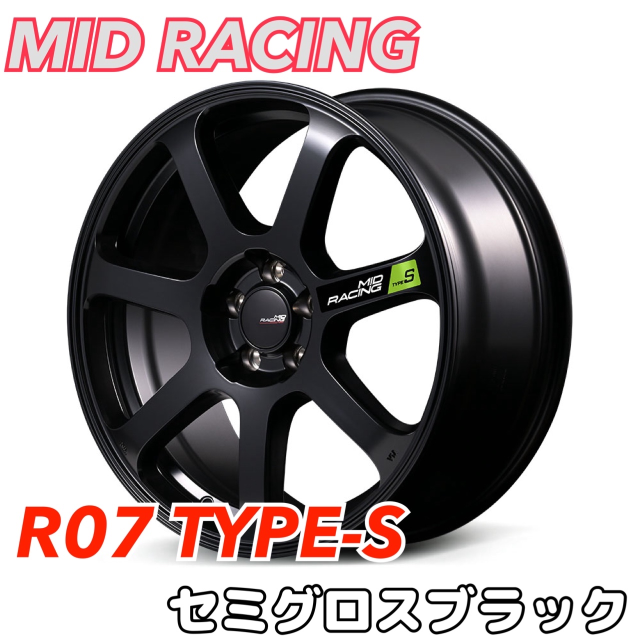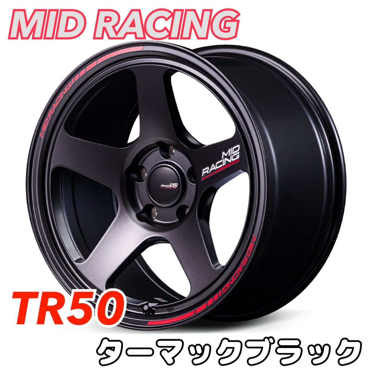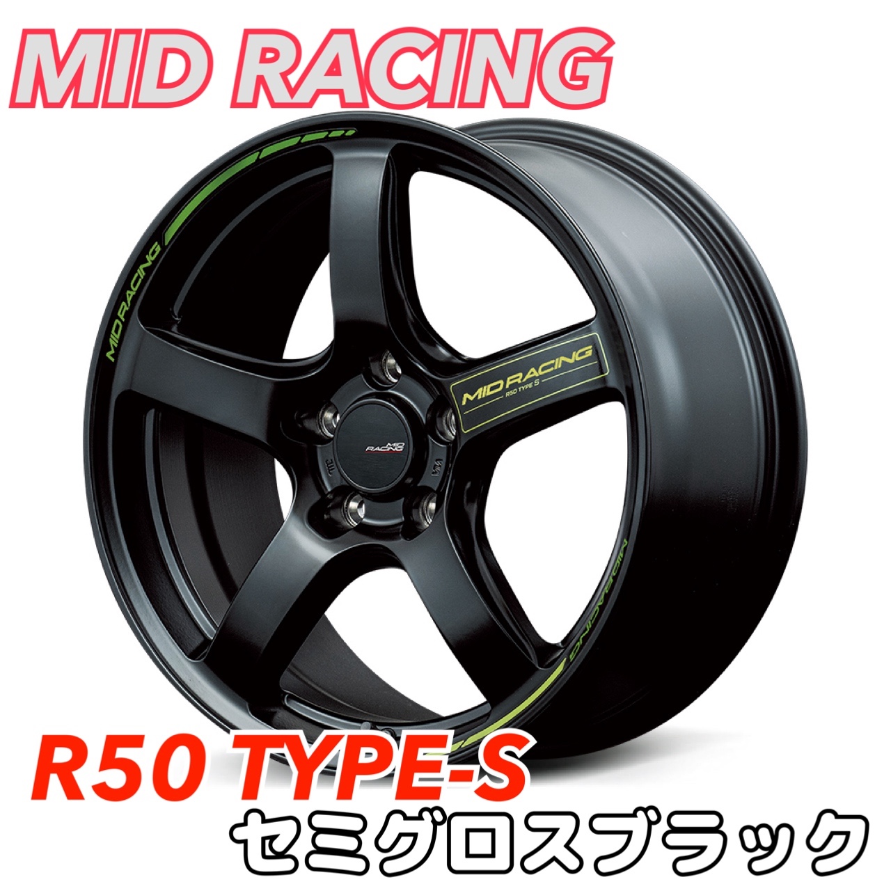ベーシックな5スポークの細部に現代的なアレンジを注入したR50に新たなバリエーションTypeSを追加。ホイール自体はシンプルなセミグロスブラックのカラーリングに、MID RACINGのロゴのみの新たなセンターキャップを装着。そこに同梱されているMID RACINGのこれまでのイメージとは全く異なるグリーンを基調としたステッカーセットを貼れば、ストリートでも一際目を引くスポーティな足元を創り出すことができる。ステッカーを貼らずにシンプルに行くか、自分なりの組み合わせでステッカーを貼りスポーティに決めるか選べる新たなMID RACINGの選択肢だ。