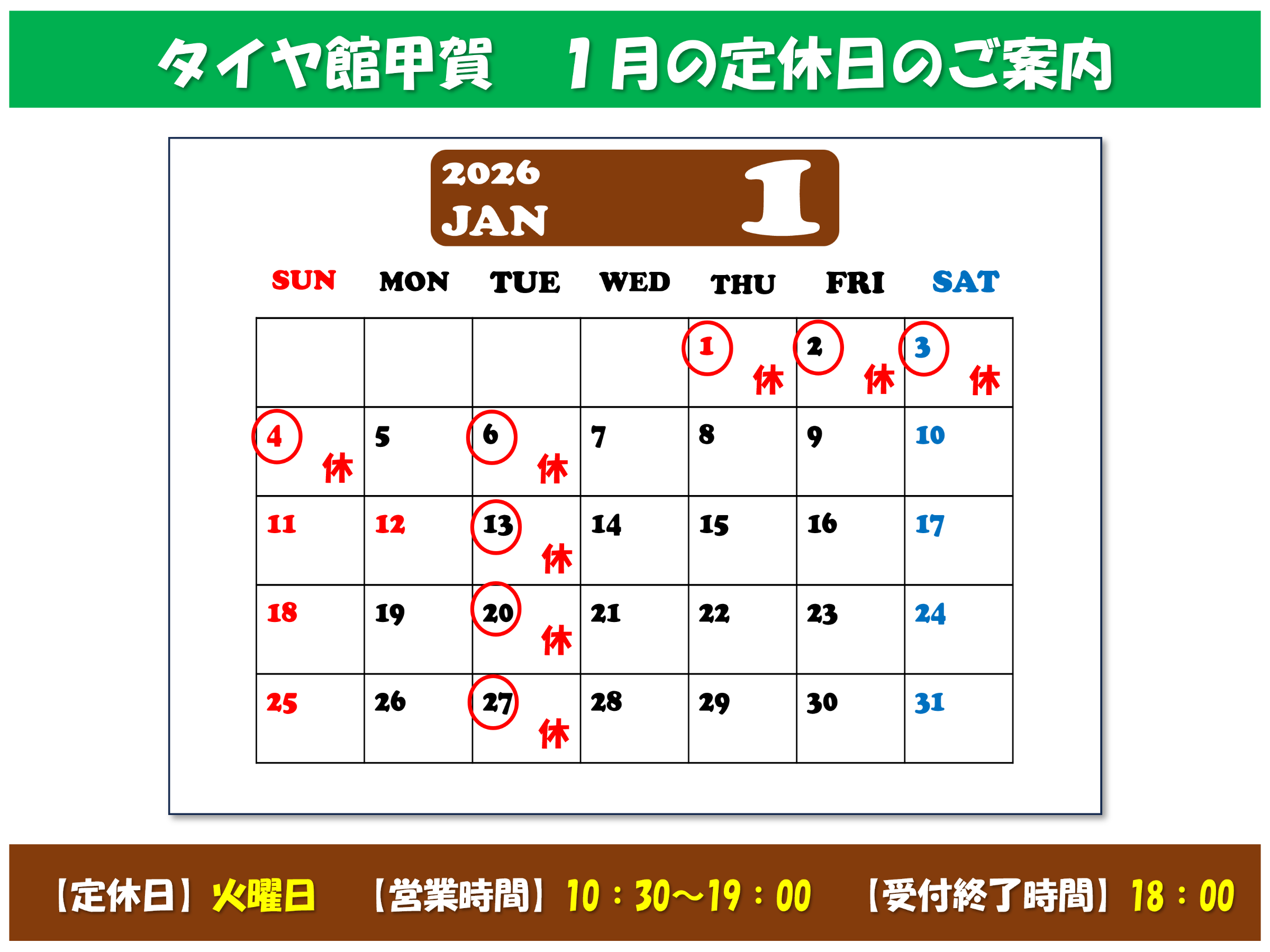 タイヤ館甲賀の年末年始の営業日について
