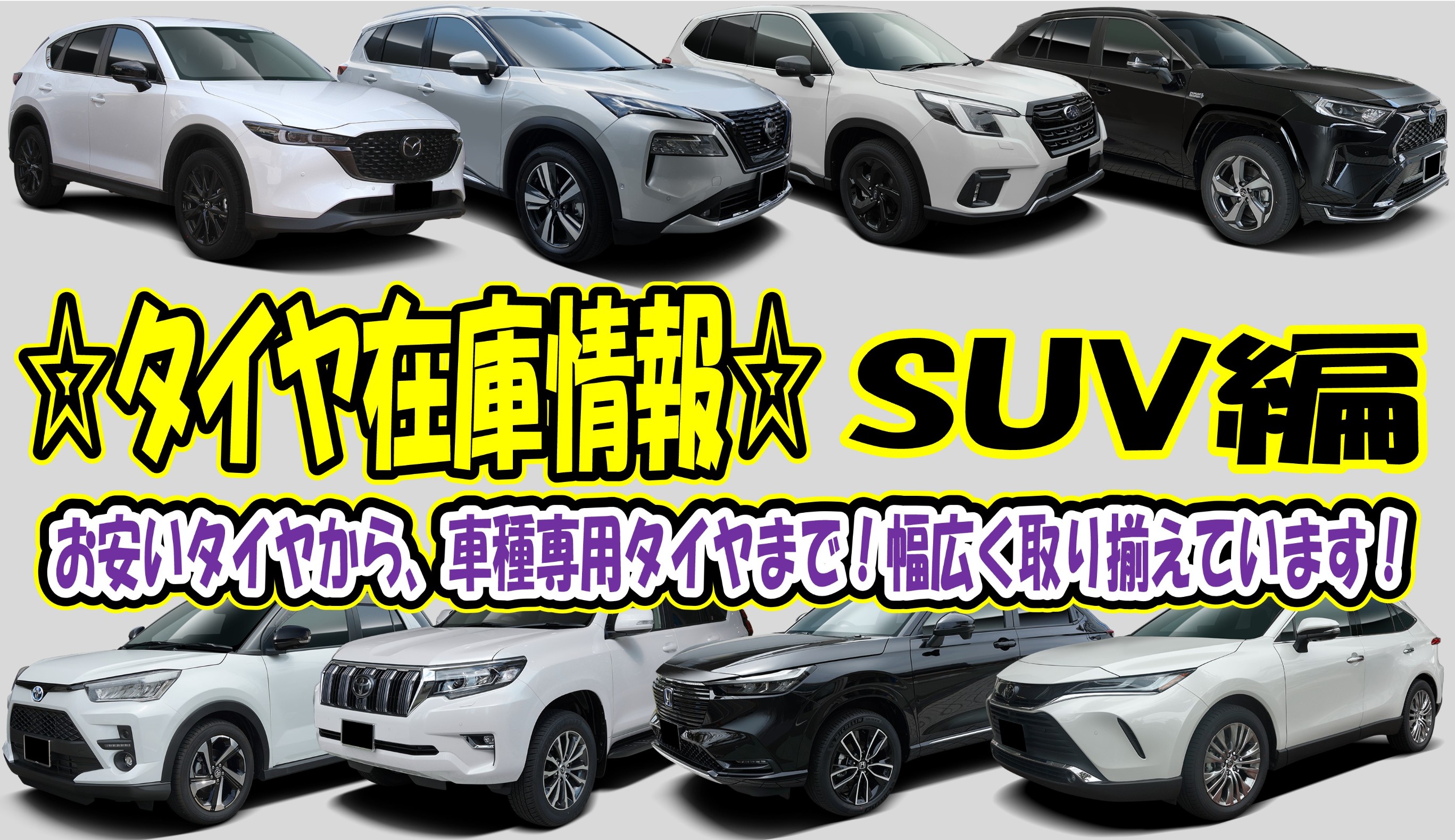 幅広い種類から選べる!SUVタイヤの在庫情報です♪